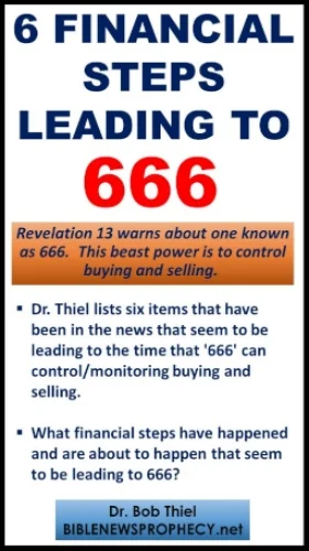 Revelation 13 warns about one known as 666. This beast power is to control buying and selling. When the Apostle John was inspired to write this over 1,900 years ago, this was not possible. Dr. Thiel lists six items that have been in the news that seem to be leading to the time that '666' can control/monitoring buying and selling. What financial steps have happend and are about to happen that seem to be leading to 666?