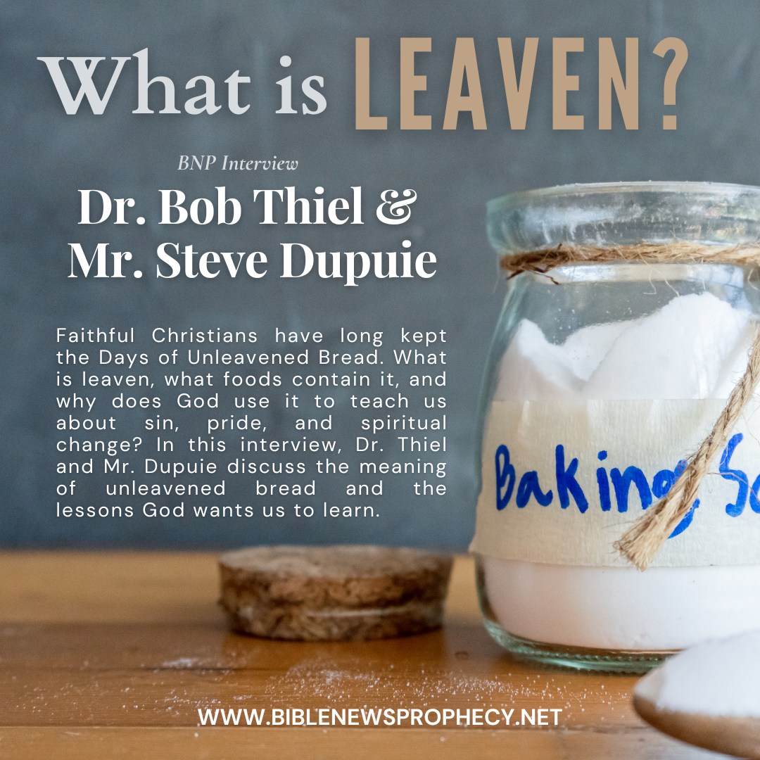 Throughout history, faithful Christians have kept the Days of Unleavened Bread. What is the significance of unleavened bread, anyway? In fact, what is leaven? What are obvious and less obvious foods that contain leaven? How does leaven relate to sin? What lessons can we possible learn from the Days of Unleavened Bread? Indeed, what lessons does God want us to learn. Can our pride interfere with what we should change in our lives? Steve Dupuie and Dr. Thiel deal with these issues and even show some leaven containing items.